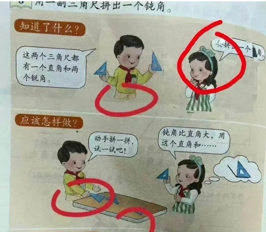 –这几天,人教版数学教材里的插图引起轩然大波,插画中所画的小朋友,几乎都是宽眼距、塌鼻梁、微微张着嘴巴的唐氏综合征样子。