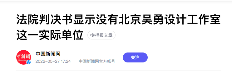 新黄河记者检索发现,北京互联网法院曾认定,并没有“北京吴勇设计工作室”这一实际的单位。