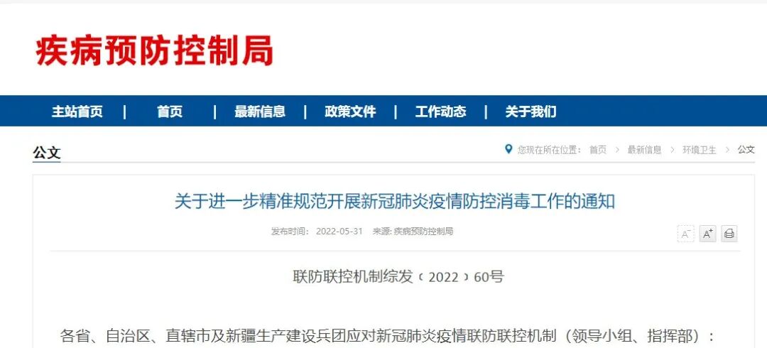 5月31日,国家卫健委官网发布《关于进一步精准规范开展新冠肺炎疫情防控消毒工作的通知》。这个通知包括三点: