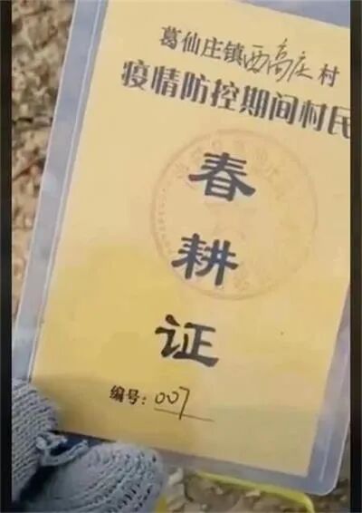 前段时间,一些地方向春播的农民发放“春耕证”,还装X装蛋地给编上了号,要求每天允许20名农民持“春耕证”,在完成登记、测温、消毒后,才可上地干活。