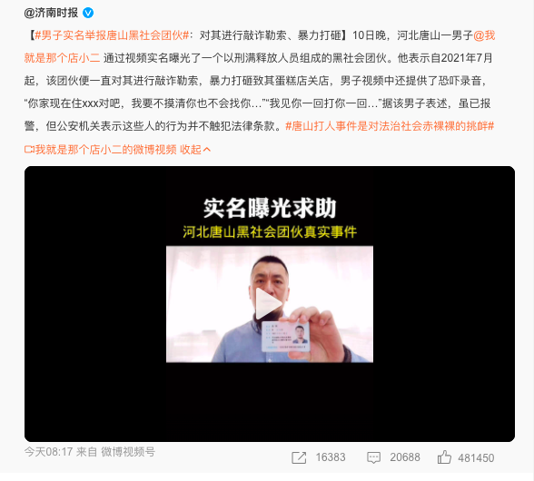 其一、打人视频触目惊心,这对唐山的形象非常不利。花钱做了多少城市宣传片都补不来了。
